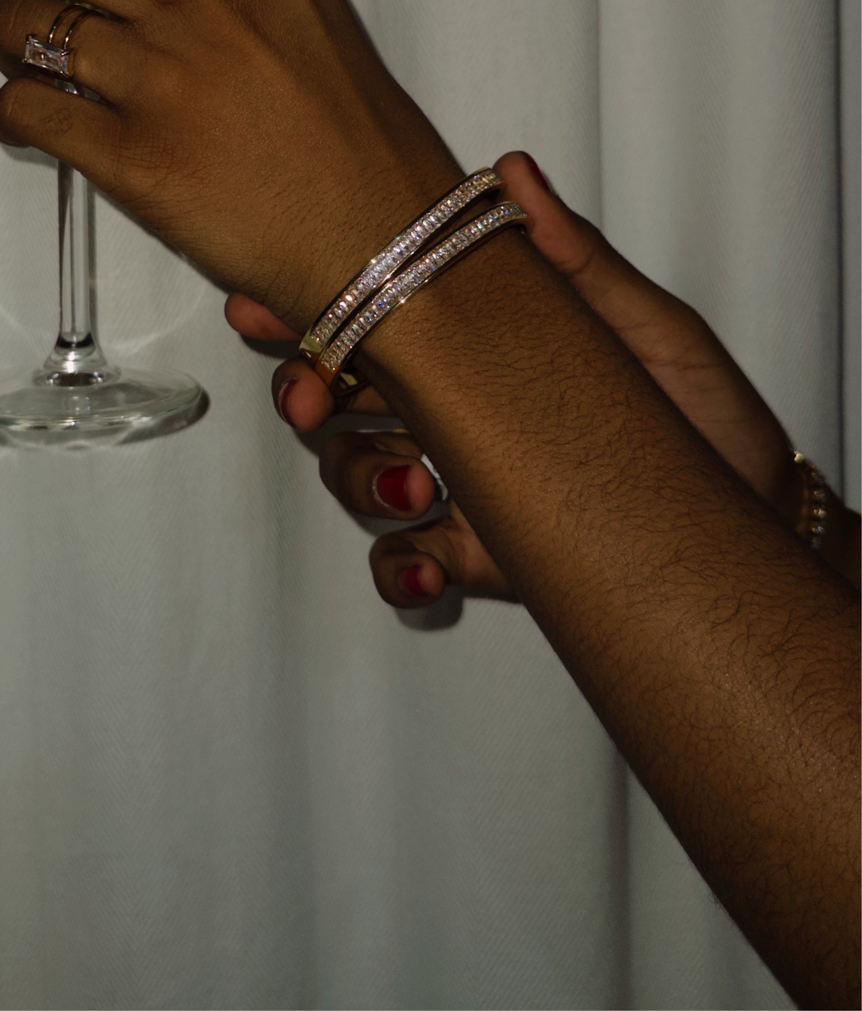 Acero inoxidable 316L con baño de oro de 18k PVD. Hipoalergénico, resistente al agua y al deslustre, con piedras de zirconias.